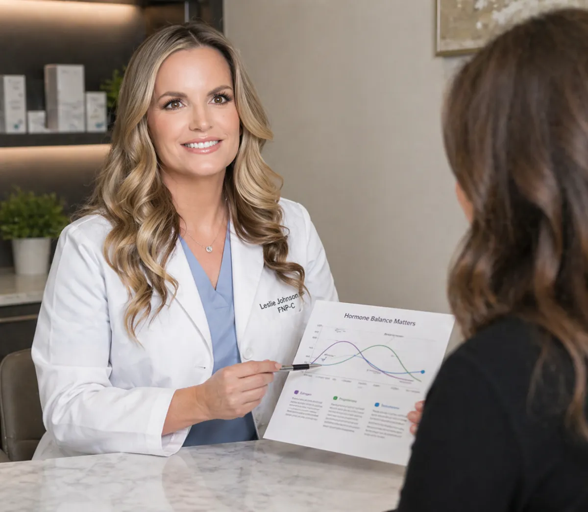Take the first step toward feeling like yourself again. Book your complimentary consultation with Leslie Johnson and get a personalized look at your hormones, symptoms, and goals—no pressure, just clarity. Your path to balanced energy, better sleep, and renewed vitality starts here.